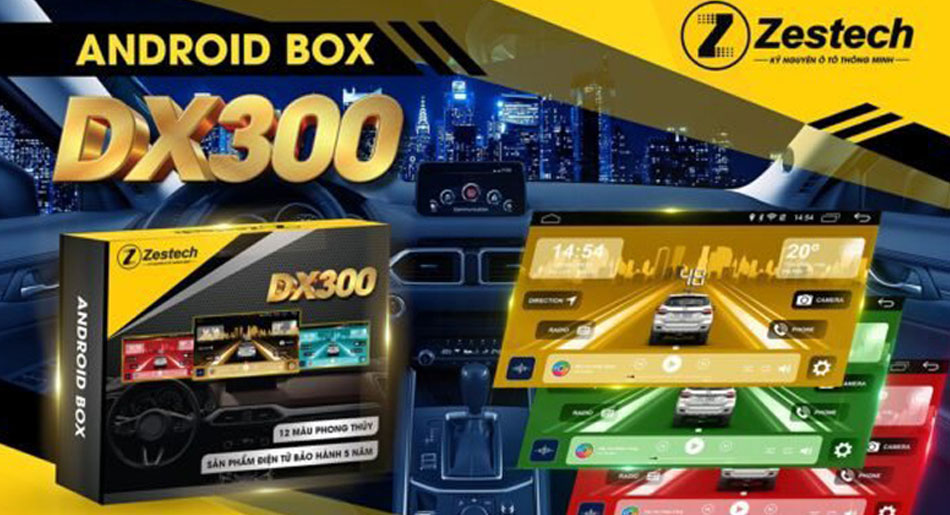 - Android Box Zestech DX300 Thế Hệ 2 tích hợp tính năng tùy chỉnh giao diện với 12 màu sắc thời thượng. Điều này mang lại cho người dùng sự lựa chọn thoải mái về màu sắc phù hợp với phong thủy cá nhân. Từ đó, mang lại cảm giác yên tâm, thoải mái và tự tin hơn khi lái xe