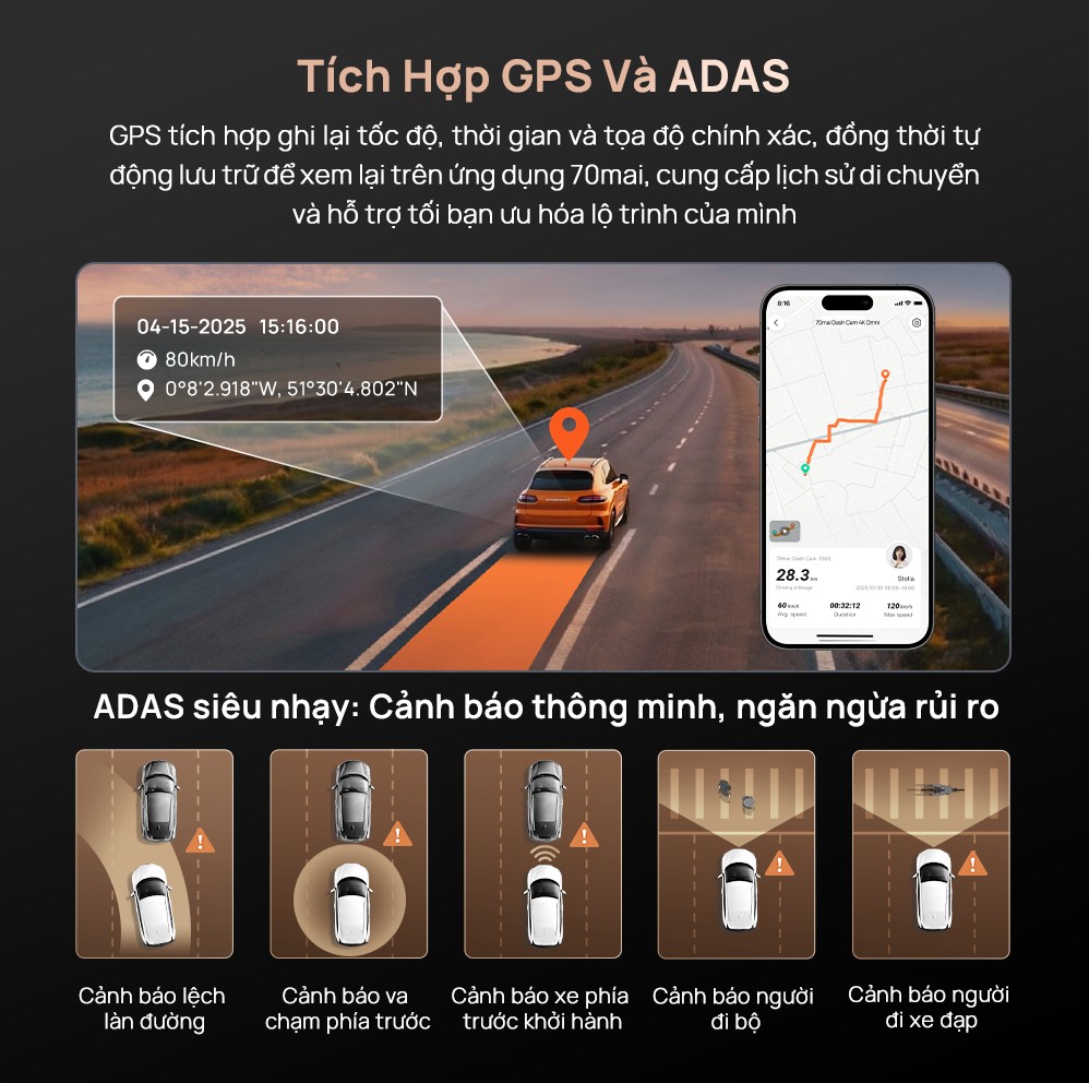 Camera hành trình 70mai 4K A810S không chỉ tập trung vào chất lượng ghi hình mà còn tối ưu hóa trải nghiệm người dùng thông qua các tính năng thông minh, giúp việc quản lý và chia sẻ hành trình trở nên đơn giản hơn bao giờ hết.