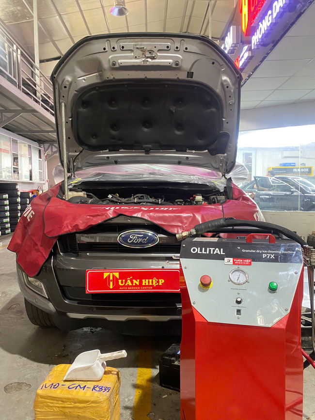 Vệ sinh bắn đá khô là phương pháp làm sạch khoang máy và các chi tiết ô tô bằng công nghệ Dry Ice Cleaning, sử dụng đá CO₂ siêu lạnh phun áp lực cao để thổi bay bụi bẩn, dầu mỡ, cặn bám lâu ngày mà không cần dùng hóa chất.